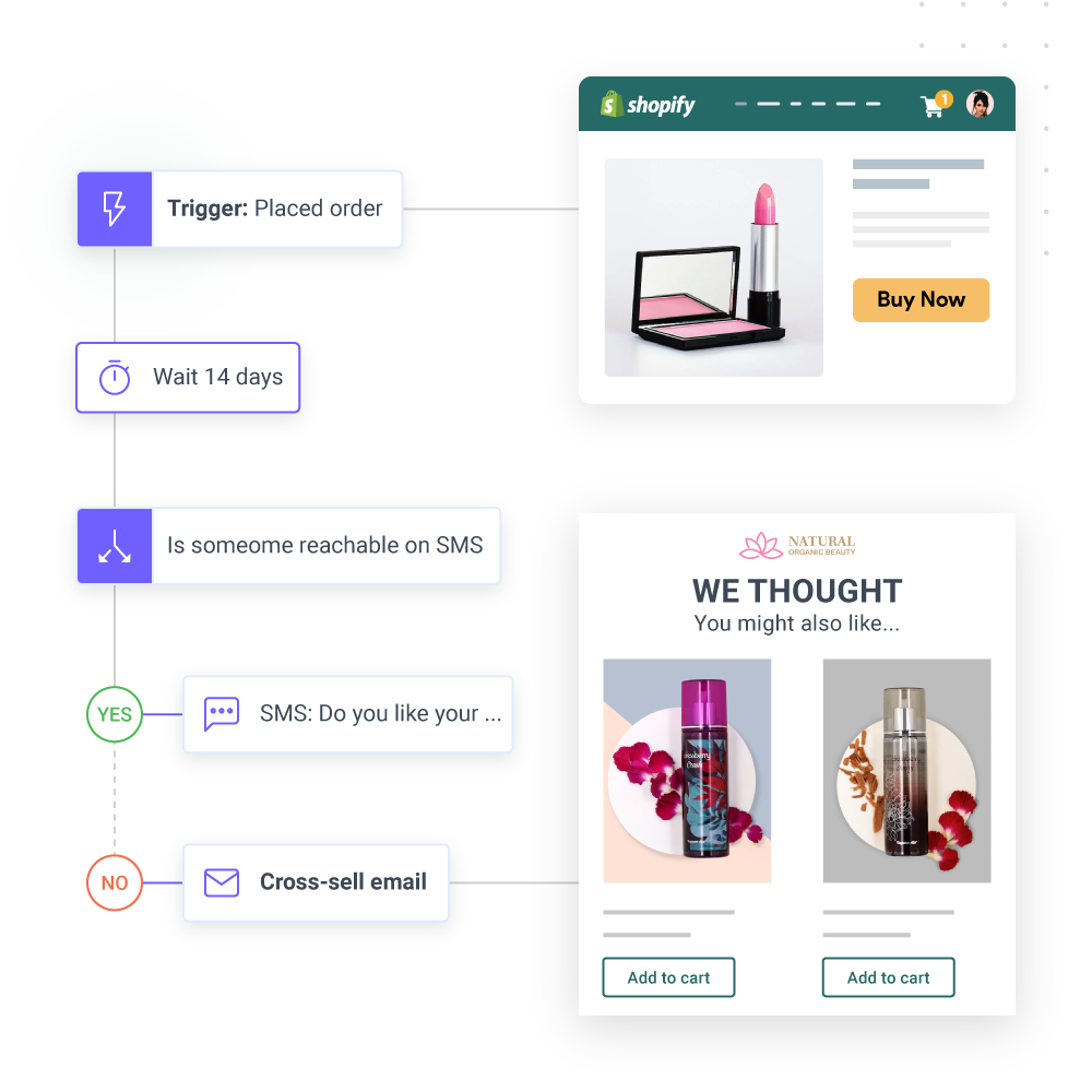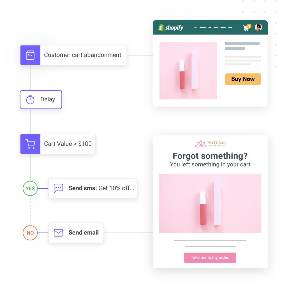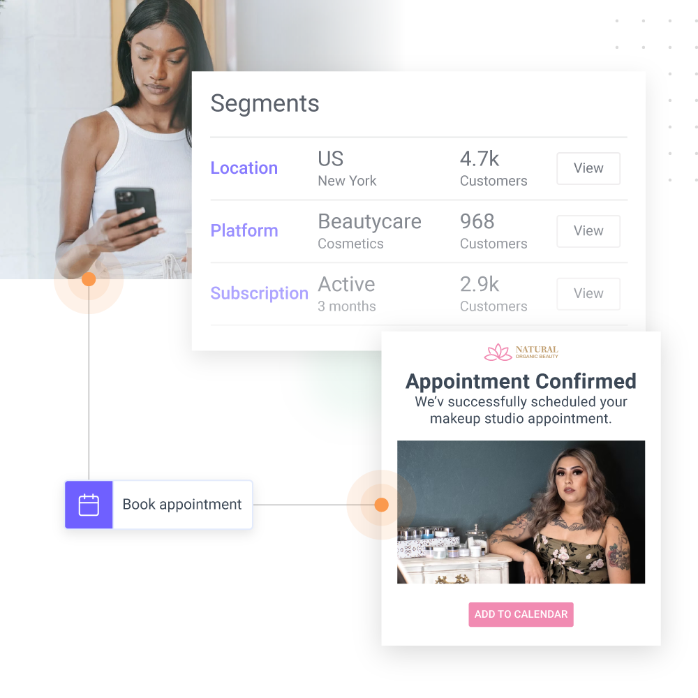 Automation has made your work effortless, as you can send automated campaigns to your audience depending on their placement in the sales funnel. With our automated workflow, you can send campaigns within minutes. So, beauty brands like yours can quickly send messages promoting new products, offering discounts, asking for product reviews, and so on.